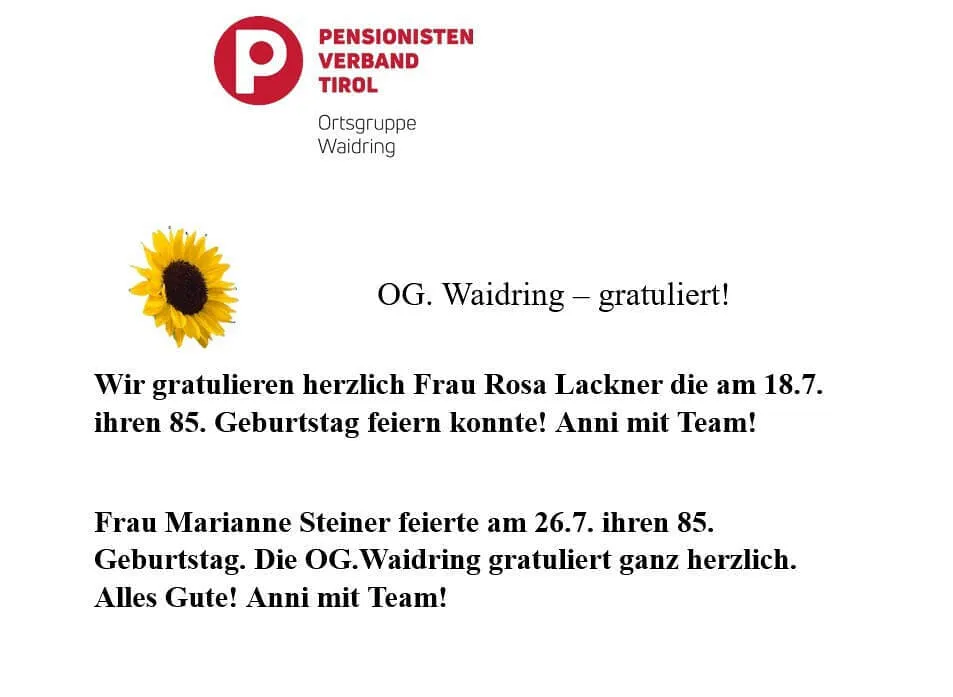 Geburtstage Steiner u. Lackner OG. Waidring